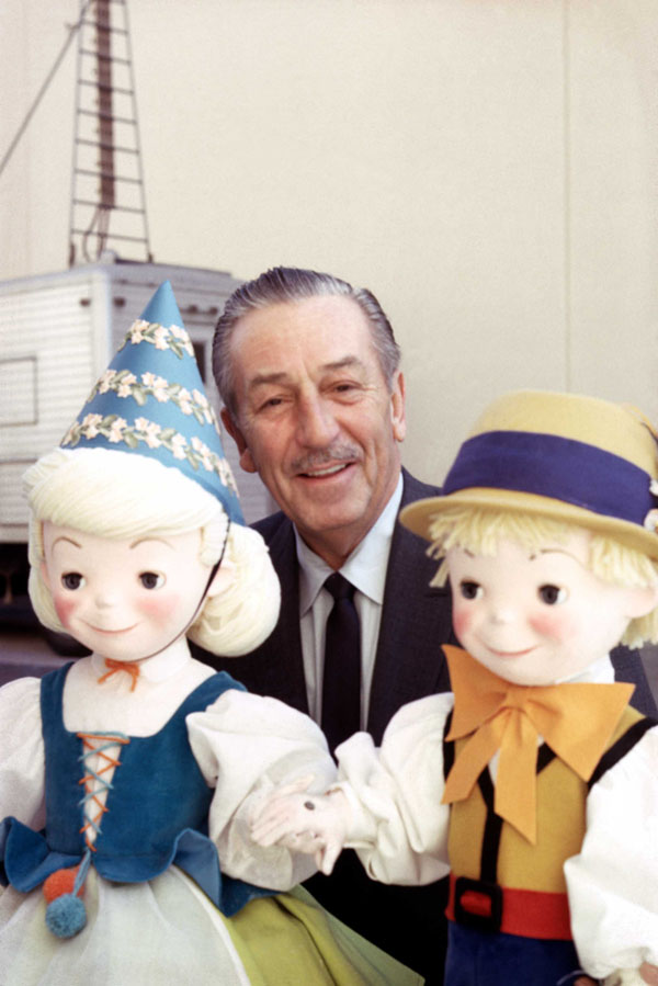 WALT DISNEY – In this 1964 photo, Walt Disney poses with dolls from ‘it’s a small world’ while filming “The Wonderful World of Color” episode entitled “Disneyland Goes to the World’s Fair.” Disney Parks is celebrating the 50th anniversary of its iconic “it’s a small world” attraction with a global celebration that benefits UNICEF. Capturing the happy, peaceful spirit of children everywhere, the attraction, which debuted at the 1964 World’s Fair, now entertains guests at five Disney theme parks worldwide. Fans around the world are invited to join the celebration at SmallWorld50.com where they may record videos of themselves singing “it’s a small world” and create virtual dolls in the style of those from the attraction. The celebration continues April 10, when hundreds of voices from the Disneyland Resort in California, Walt Disney World Resort in Florida, Tokyo Disney Resort in Japan, Disneyland Paris in France and Hong Kong Disneyland Resort will be united in a global sing-along. (Disney Parks)